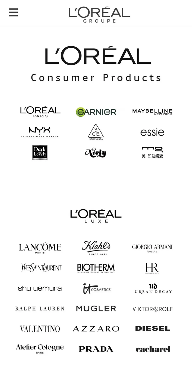 而作为收购方的欧莱雅集团被誉为"美妆帝国",旗下拥有巴黎欧莱雅、卡尼尔、美宝莲纽约、圣罗兰美妆、华伦天奴、兰蔻等数个品牌。凭借多年以来的大举收购,其已逐渐形成覆盖美发、护肤、彩妆、香水领域的完整品牌矩阵。