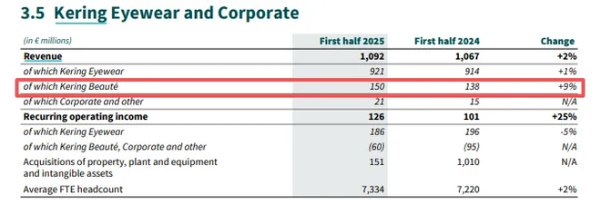 财报数据显示,2024年开云美妆总销售额达3.23亿欧元,同比增长421%,贡献主要来自于Creed。今年上半年,集团业绩整体承压背景下,美妆业务仍保持着9%的增速。