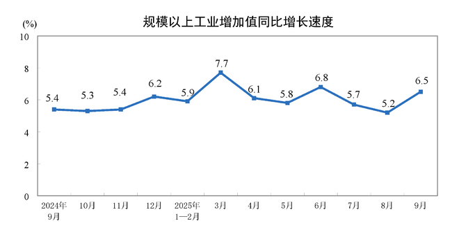 中国规模以上工业增加值在9月份同比增长了6.5%,其中装备制造业和高技术制造业表现良好,呈现出良好的增长态势,这表明中国制造业的发展势头强劲,特别是在高端制造业领域具有较大潜力,这一增长趋势有望为中国的经济发展注入新的动力。