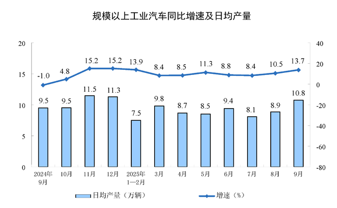 9月份,规模以上工业企业产品销售率为96.7%,同比上升0.6个百分点;规模以上工业企业实现出口交货值14760亿元,同比名义增长3.8%。