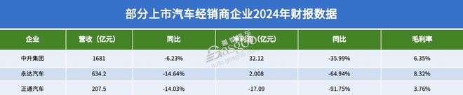 据盖世汽车的《经销商和直营模式生存现状调查》数据显示,有六成受访者称当前经营的4S店处于小幅亏损(-10%~0%)状态,还有约一成经销商亏损幅度超20%。而2024年,中升集团、永达汽车、正通汽车三家头部经销商的财报均显示集团陷入盈利困境,净利润都大幅减少。曾经遍布全国的4S店网络,在注重用户体验和高效服务的新时代显得笨重且低效。
