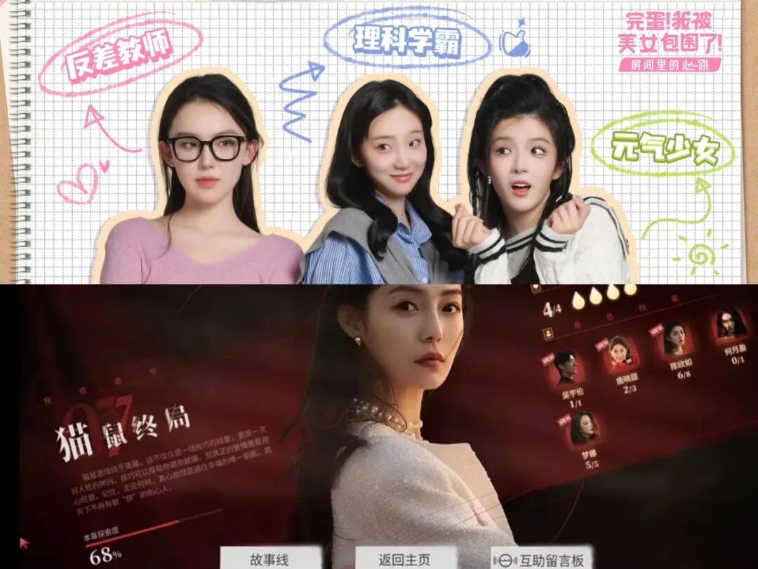 纵观近几年国内爆火的真人影游,题材类型成为吸引用户的关键因素。如《完蛋!》《情感反诈模拟器》为恋爱题材,都以男性玩家为目标群体,前者通过被美女环绕的“爽文”剧情,填补了部分男性现实中的情感缺口,为其提供低成本的情感宣泄和心理慰藉。后者通过映射现实中因情感诈骗、价值观差异引发的矛盾,迎合部分男性对情感付出失衡的反思。而《盛世天下》作为此前少见的宫斗题材,提供一种“看看你能在宫斗剧里活到第几集”的探索乐趣,同时将角色命运与职场、人性等现实议题相呼应。