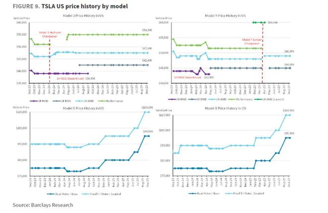 3)欧洲市场: 欧洲市场三季度表现较为一般,主要还是由于贸易战下消费者对美国产品的整体回避,以及 CEO 埃隆・马斯克涉足政治引发的品牌声誉受损。