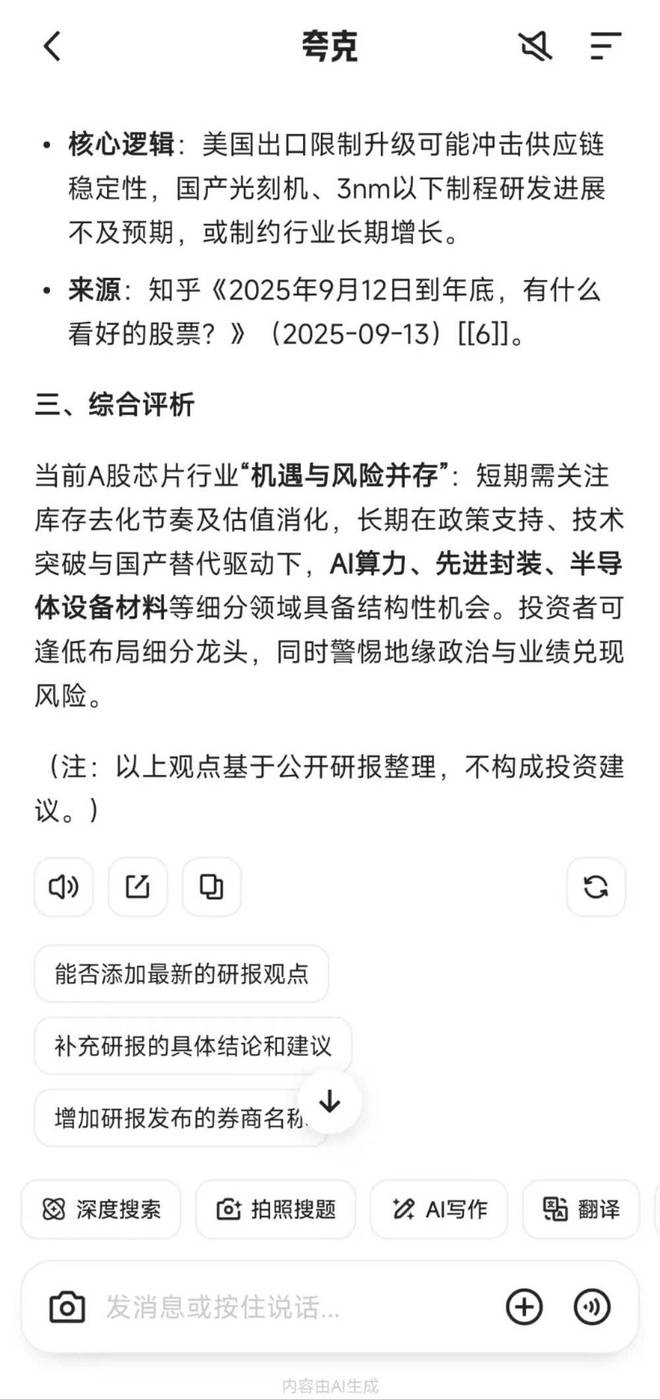 在Qwen模型与搜索能力的支撑下,夸克赢得了2亿用户的信任。这种信任尤为可贵,因为夸克用户的主体,恰是最为挑剔,以解决问题为导向的群体。在充分验证的需求场景下,对话助手提供了流畅的解决方案。
