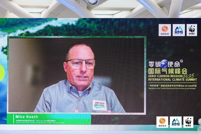 论坛上,北美高效货运委员会主任、Run on Less 项目创始人Mike Roeth回顾了其在重型卡车脱碳运营领域的探索历程,并分享了电动卡车在长途货运中的最新应用成果与挑战。
