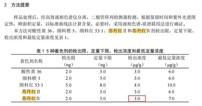 而根据《化妆品安全技术规范2015版》苏丹红IV的检出浓度为3.0μg/g。李锦聪表示,就算商家送检苏丹红IV项目,结果也可能是“未检出”,因为“实际样品的检出浓度,可能会低于指定方法的检出浓度。”