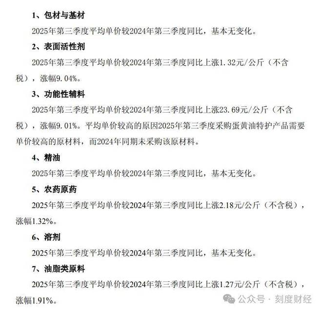 整体来看,润本2025年前三季度综合毛利率约58.2%,较2024年同期的58.4%小幅下降0.2个百分点。虽然该数据仍保持较高水平,但成本端的持续压力已经对利润增长形成压力。