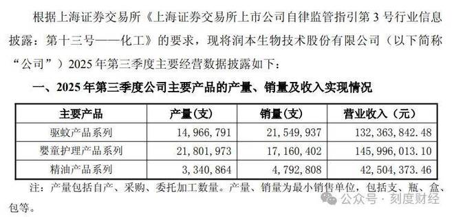 2025年第三季度,润本的驱蚊系列产品增长动能明显减弱,虽然实现了1.32亿元营收,但销量同比减少9.81%。