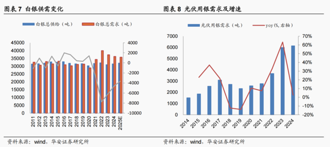 根据华安证券的研报显示,在光伏行业大爆发的2021年前,白银供需一直处于“紧平衡”状态,但2021年后需求大幅超过供给.