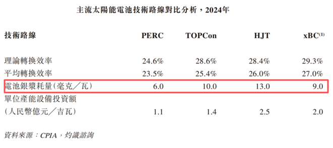 日御光伏的招股说明书显示,2024年,无论是TOPCon、HJT还是BC技术比传统的PERC技术相比,银浆消耗量都是大幅提升,此外双面组件的出现也会将需求继续抬高,甚至于备受关注的钙钛矿叠层技术也需要银浆导电。