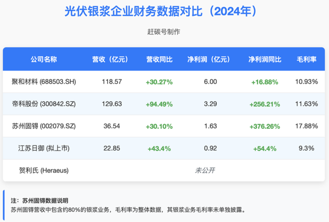 抛开理论推演,当前光伏银浆企业的实际经营处境尤为值得关注。数据显示,行业前五企业已占据73%市场份额,行业集中度较高。但除外资企业贺利氏外,国内公司毛利率普遍处于9%–12%区间,整体盈利承压。例如,苏州固锝虽整体毛利率为17.88%,但其中包含高毛利半导体业务贡献,纯银浆业务盈利能力估计仍处平均水平。
