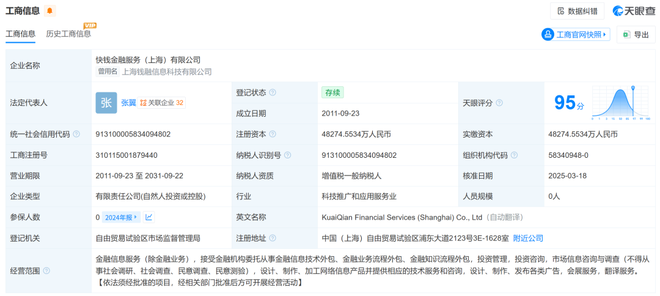 快钱金融是获得全牌照的第三方支付机构。中国儒意在公告中明确表示,快钱金融可以与线上流媒体、线上游戏服务以及线下影城业务产生协同效应。虽然估值为8亿元,但快钱金融本身的规模不大。天眼查App显示,该企业为微型企业,人员规模为0人。