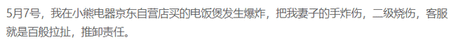 从社交平台和投诉渠道不难发现,不止一位用户遭遇过小熊电器爆炸的情况。