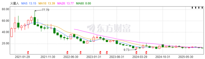 截至10月29日发稿,火星人跌2.56%报12.20元/股,较高位已跌超八成,公司总市值50.07亿元。