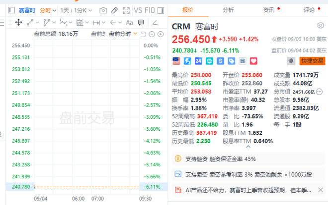 美股盘前,C3.ai跌约12%,公司第一财季业绩不及预期。Salesforce跌约6%,公司二季度营收102.4亿美元,同比增长9.8%。