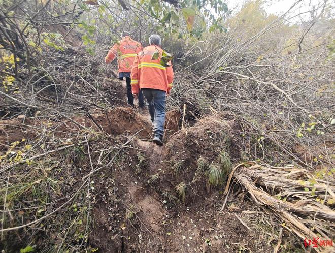 10月30日中午,走了近40分钟山路后,崔某某终于来到母亲失联的山塬之下。他抬头看见山塬的横截面裸露在外,切面像是被斧子从中间劈砍的圆木一般,滑坡下来的黄土就这样铺满整个山塬底部。