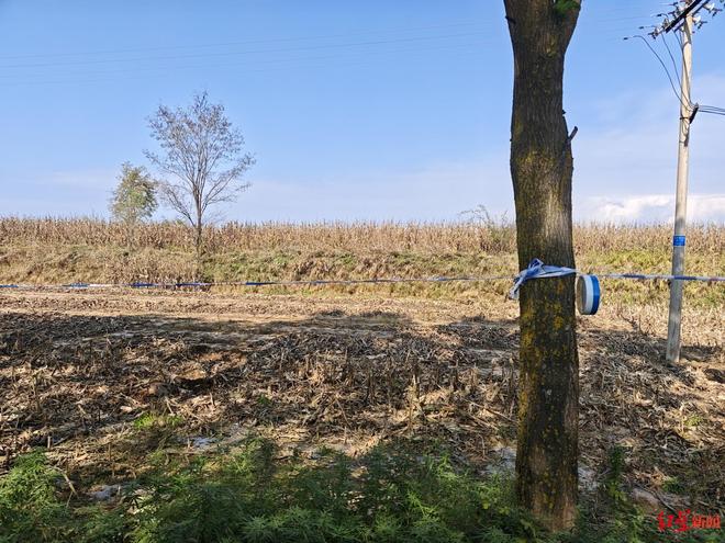 ▲马来腰村水泥路边的玉米地已经被拉上警戒线