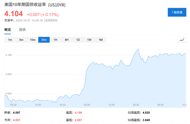 市场预期的转变直接反映在债券市场上。美国10年期国债收益率升至约4.1%的三周高点,较前一交易日收盘上涨0.7个基点,这增强了美元资产的相对吸引力。