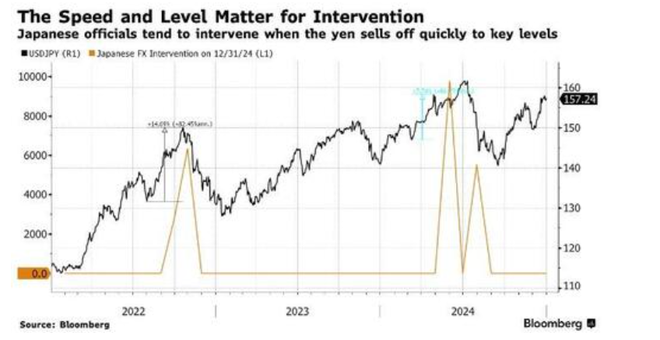 尽管官方表态存在模糊之处,但多项指标显示,外汇干预的条件可能正在形成。据彭博分析师Skylar Montgomery Koning的观点称,日本采取更果断措施的两个关键因素是贬值的“速度和水平”。