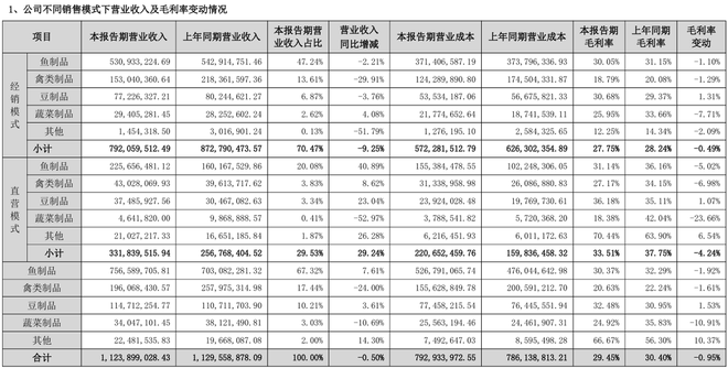 核心大单品"劲仔小鱼"是公司增长的主要动力,今年上半年,作为营收"压舱石"的鱼制品实现收入7.57亿元,同比增长7.61%,收入占比约为67.32%。