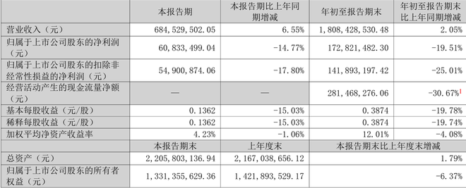 近日,"鱼类零食第一股"劲仔食品发布了一份增收不增利的三季报,公司前三季度营收未能延续过去三年同期营收双位数增长的态势,实现营收同比小幅增长2.05%至18.08亿元,创下自2020年上市以来的最低增速;归母净利润时隔三年再次呈现负增长,同比下滑19.51%至1.73亿元。