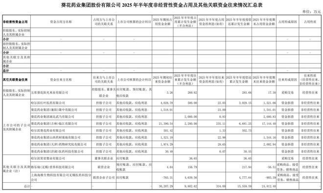 凤凰网财经《公司研究院》注意到,与相关公司的交易往来并未止步于2024年,2025年上半年仍在持续——葵花药业与格乐瑞因采购、销售商品及劳务往来产生156.79万元资金交易,期末尚欠对方56.5万元;与海维生物无锡医药科技分公司的经营往来更是高达4639.56万元,期末葵花药业尚欠对方903.39万元。