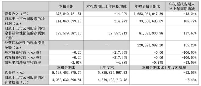 前三季度,公司营业收入16.84亿元,同比暴跌43.24%;归母净利润亏损3353.87万元,同比断崖式下降105.72%,扣非净利润更是亏损8139.40万元,同比下降117.68%。