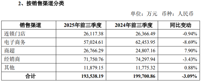 在发布三季报的同时,五芳斋还发布了2025年前三季度主要经营数据的公告。