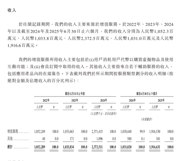 招股书数据显示,2024年,增值服务占到公司营收的99.9%。