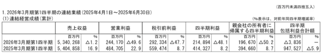财报显示,本田第一财季销售净额为5.34万亿日元(约合2600.53亿元人民币),同比减少1.2%;经营利润为2441.7亿日元(约合118.91亿元人民币),同比大幅减少49.6%;净利润锐减至1966.7亿日元(约合95.78亿元人民币),同比减幅高达50.2%,近乎腰斩。