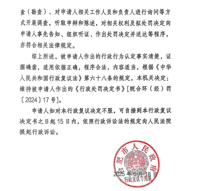 ▲合肥市人民政府驳回合肥康盛管业有限责任公司行政复议