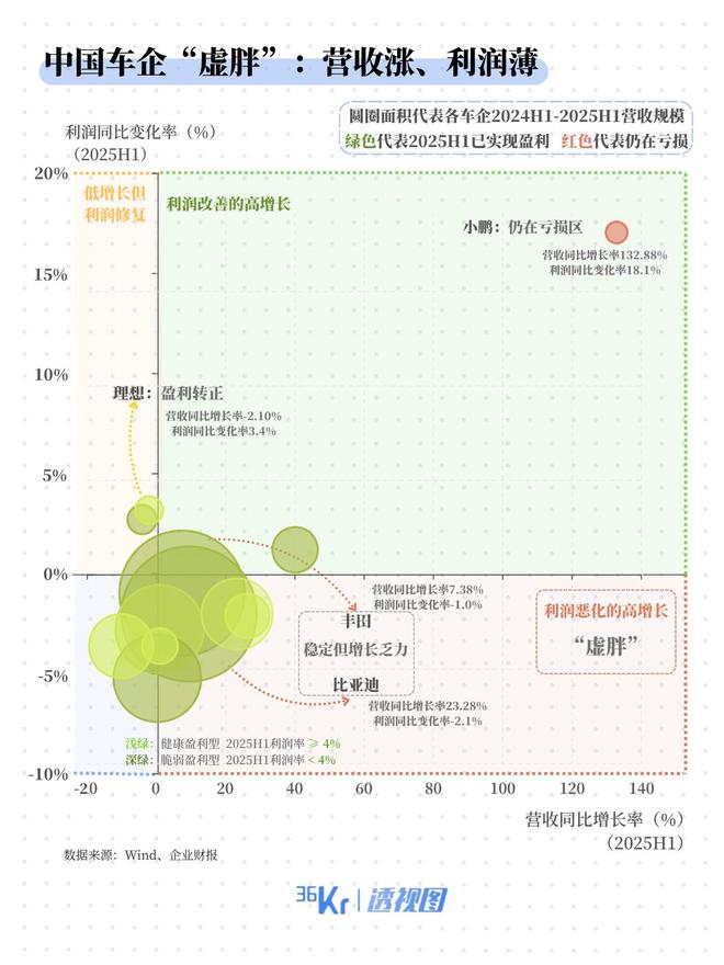 2025年9月,新能源汽车销售均价下滑至15.8万元,为2019年后首次跌破16万元价位线。激烈竞争使得市场竞争变形,理想、小鹏等新能源品牌虽然销量上涨,但利润难爬升;比亚迪、丰田、大众等企业则陷入营收涨单利润跌的怪圈。长期降价的反噬,已经浮现。