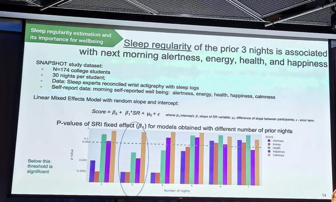 在围绕174名大学生、连续30晚的睡眠监测后,哈佛医学院的睡眠专家发现,仅在三晚之后,睡眠的规律性就会和反应、精力、幸福感等指标呈现出强相关反映。