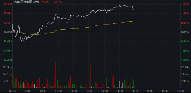 截至发稿,百度港股今天涨1.3%,报97.25港元/股,比高盛预测的12个月目标价高10%。