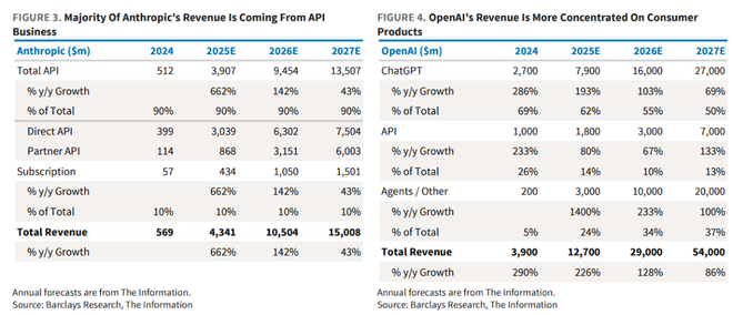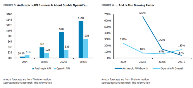 据巴克莱分析,Anthropic在API业务领域已经建立起相较于OpenAI的显著优势。