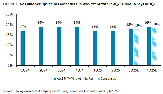 巴克莱预计,如果亚马逊的云服务AWS能够保持与Anthropic的合作关系,第四季度收入增长有望比市场预期高出约2%。