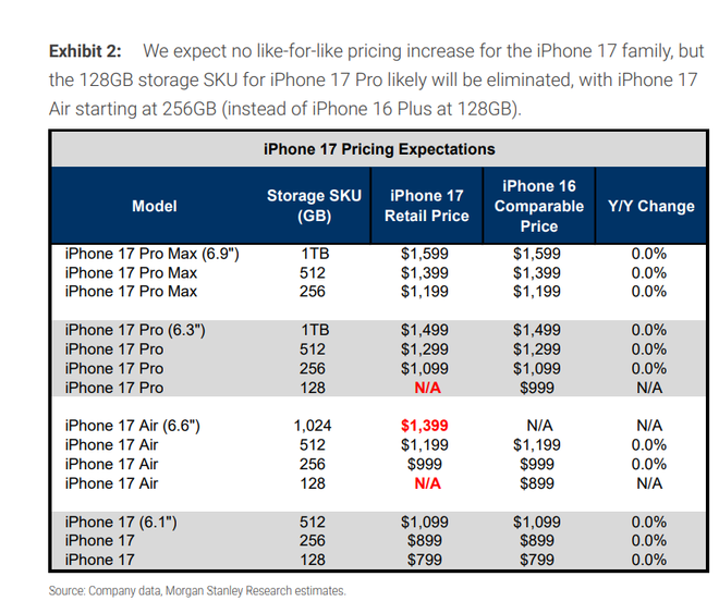大摩预测,iPhone 17定价温和上涨,聚焦下周苹果发布会新动向