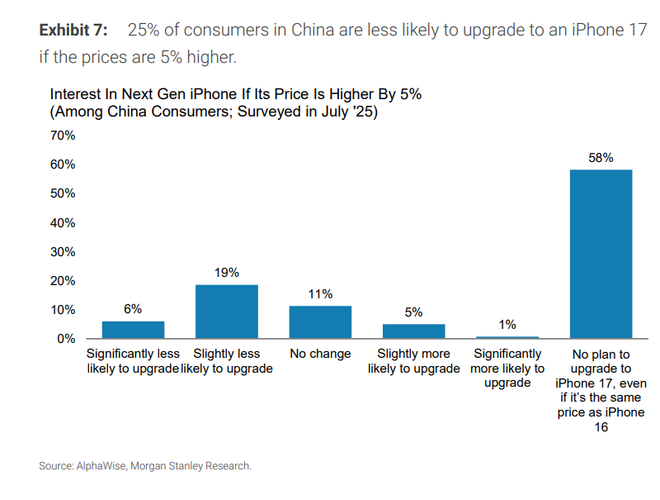 然而,报告同时指出,这一保守预期本身可能蕴含着上行风险。摩根士丹利引用其早前的调查数据称,截至2025年3月,有51%的美国iPhone用户表示在未来12个月内“极有可能”升级设备,创下历史新高。此外,30%的美国iPhone用户对超薄机型表现出“极大兴趣”。