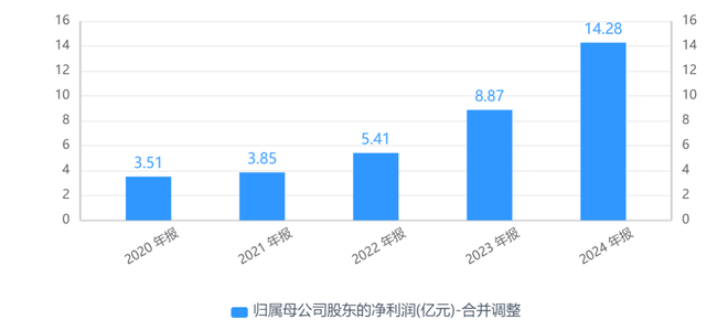 拉长时间轴线来看,神州泰岳近年业绩保持稳健增长态势。2020年至2024年,公司归母净利润分别为3.51亿元、3.85亿元、5.41亿元、8.87亿元、14.28亿元。