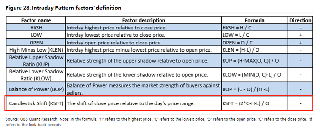 瑞银将技术指标分为五大类别:动量(Momentum)、波动率(Volatility)、日内形态(Intraday Pattern)、成交量(Volume)和量价结合(Price-Volume Interaction),并回测了它们在中国市场的表现。