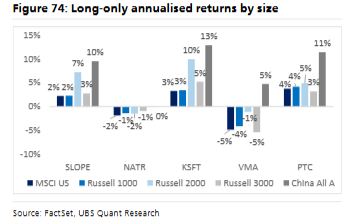 瑞银指出,技术指标在中国市场存在显著的“小盘股溢价”。