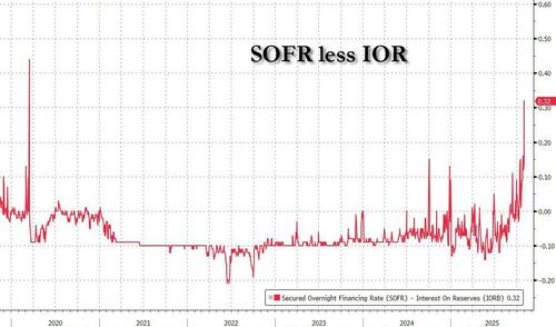 这场即将到来的发债潮,恰逢美国货币市场关键流动性指标“告急”。由于美国政府停摆迫使美国财政部囤积现金,市场流动性已被大幅抽干,其效果堪比多次加息,这使得任何新增的资金需求都可能放大市场的波动性与风险。