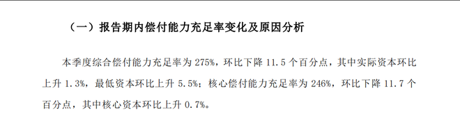 近日,中国大地财产保险股份有限公司披露了2025年第三季度偿付能力报告,报告显示,其三季度综合能力充足率为275%,环比下降 11.5个百分点;其三季度核心偿付能力充足率为246%,环比下降 11.7个百分点。