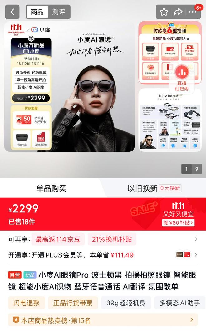 百度小度AI眼镜经过近一年的准备,现已正式开售,售价为券后价2299元,这款眼镜融合了人工智能技术,具备多项实用功能,为用户提供更加便捷的生活体验,经过长时间的研发和打磨,百度终于将这款眼镜推向市场,预计将受到消费者的热烈欢迎。