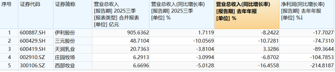 即便是营收保持微增的行业龙头伊利股份,也并非高枕无忧。其增长背后隐藏着核心业务萎缩的危机,作为营收基石的液体乳业务在第三季度同比下滑了8.8%,同时公司净利润出现下滑,这表明其面临着不小的盈利压力。