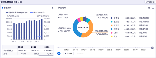 至此,万亿公募巨头博时基金完成了领导班子的过渡调整。据同花顺iFinD数据显示,截至三季度末,博时基金管理规模达1.19万亿元,公募市场排名第8,产品端以固收类为主,债券型和货币型基金规模占比超过76%。