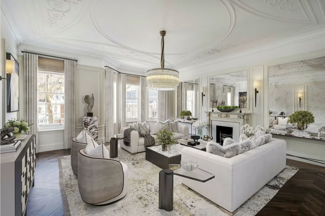 根据市场销售资料,这座二级保护联排别墅建筑面积达7948平方英尺,配备私人影院、电梯及六间卧室。房产最初挂牌销售时要价为2150万英镑,最终成交价1950万英镑使其位列去年伦敦豪宅成交金额第34位。
