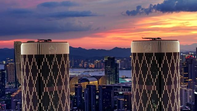 250米凌云双塔高区,将杭州“最具辨识度”的城市封面尽收眼底:钱塘江横亘窗前,潮起潮落间尽展自然磅礴;亚洲最大在建SKP、奥体印象城组成的“品质生活商圈”,勾勒出繁华盛象;杭州之门、大小莲花碗、国博中心等构成的“杭城至美天际线”,尽显国际都会气派;万亩绿地与央视同款“高铁麦田”网红风景相映,为视觉增添一抹“自然绿海”。