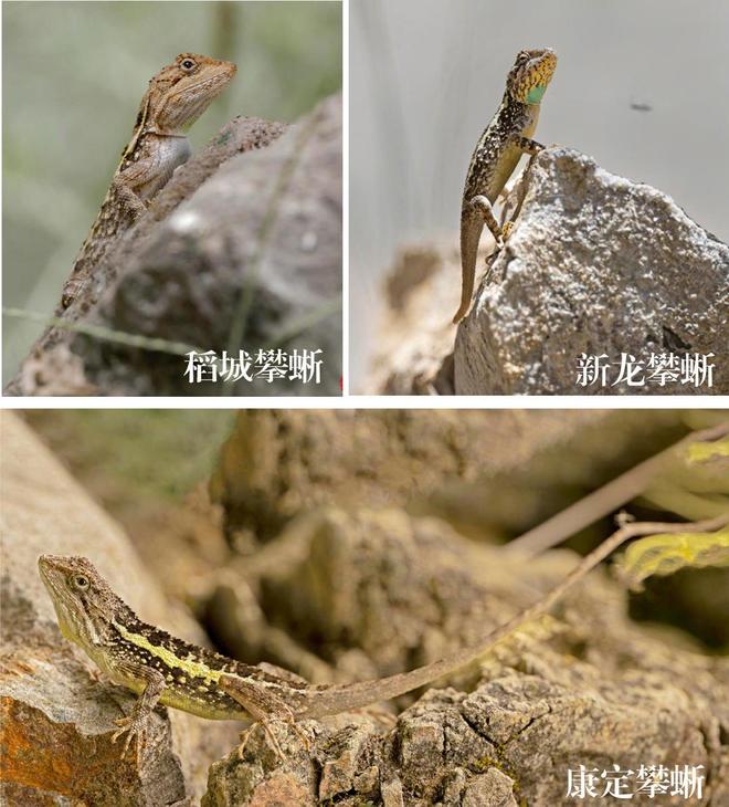 在动物新种方面,俸强介绍,2022年在甘孜州干热干旱河谷发现了3种蜥蜴新种——稻城攀蜥、新龙攀蜥和康定攀蜥,在汶川岷江河谷地区发现了新种——汶川滑蜥;今年,卧龙齿突蟾、华西颈斑蛇等新种也相继在卧龙、峨眉山被发现,印证了四川省生态的独特性。![]()