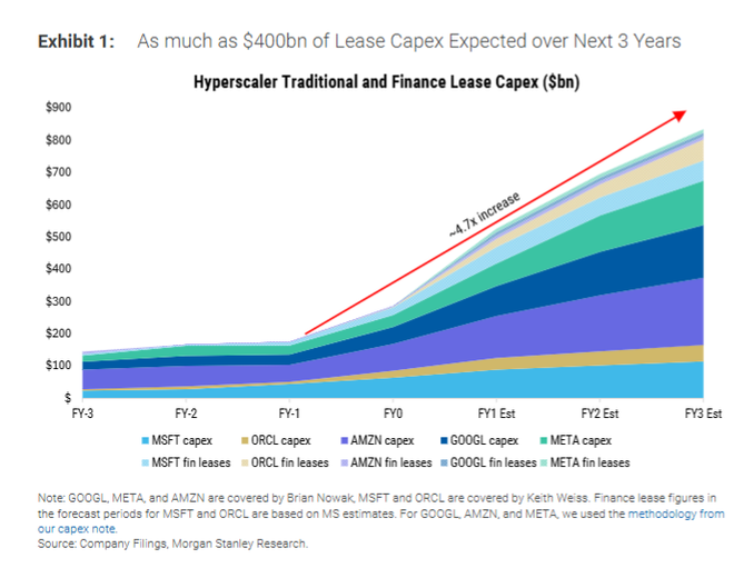 据追风交易台,摩根士丹利近期发布的一份题为《AI:租赁未来》(AI: Leasing The Future)的报告显示,一种类似债务融资的“融资租赁”模式,正在成为支撑AI基础设施扩张的关键力量。